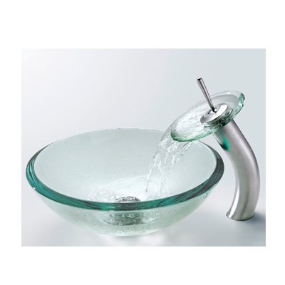 Kraus C-GV-101-12mm-10CH Clear Glass Vessel Sink and Waterfall Faucet, Chrome Feature
